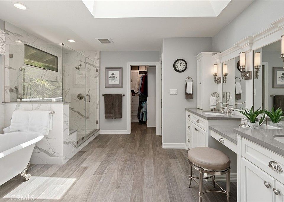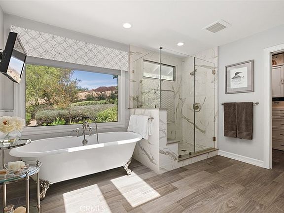 31591 Via Coyote is a beautiful 3,200+/- square foot property; it offers 5 bedrooms (one currently used as a bonus crafting room) and 3 full baths. Located amongst acres of open space and trees, the home is beautiful inside and out and is filled with designer touches throughout that the owner meticulously curated. High ceilings, a sweeping staircase, and rich flooring greet you upon entering the home. It has been updated recently with paint, crown moldings, carpet, and refinished hardwood flooring. Wood-tile flooring, a clawfoot tub, skylights, customized vanities, light fixtures, and finishes have been installed in the upstairs master and secondary bathrooms. Both the formal living room and the family room feature brick surround fireplaces. A Viking range, wine refrigerator, built-in refrigerator, and a range hood are part of the upgraded kitchen, along with gorgeous deep, rich tones of granite counter tops and custom slate backsplash. Many of the rooms have been updated with replaced windows and remote-controlled window coverings. This home has 30 solar panels that are wholly owned and are incredibly energy efficient. Landscape renovations, including sprinkler systems and fencing, that were carried out on the exterior. Taking in the serene beauty of the area while sipping coffee or cocktails on your porch will be a highlight of living here. A roof was recently installed, and the garage now has an epoxy floor, custom cabinets, and shelving for organization. The home is located in the picturesque Coto de Caza Village community and has a full driveway for parking convenience. Low HOA fees and property taxes make it an ideal home for anyone seeking luxury living. This community is adjacent to the Coto Valley Country Club, award winning schools, shopping & restaurants, & provides easy access to the tollway. Coto de Caza amenities include the Golf & Racquet Club (membership required), hiking, biking & horse trails, parks, Equestrian Center, sports parks & much more! See Features sheet for additional details on this one of a kind home.