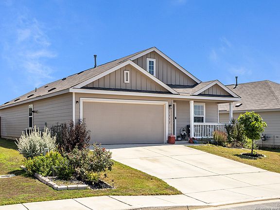 Welcome to your new home at 31592 Meander, Bulverde, TX 78163, a beautifully maintained modern residence built in 2020 that combines comfort, style, and functionality in one inviting package. Step inside to discover an open-concept living space where the living room flows seamlessly into a well-appointed kitchen. The kitchen features gleaming granite countertops and ample cabinet space, perfect for meal prep and entertaining. With four bedrooms and two full baths, every member of the household has their own space, plus common areas that feel generous and bright. The master suite is a relaxing retreat, complete with a full bath that includes a single vanity and a shower tub combo. Outside, enjoy a large backyard ideal for evening gatherings, gardening, or simply taking in the Texas sky. The home also offers the added benefit of solar panels, contributing to energy savings and a smaller environmental footprint. Situated in a friendly neighborhood, you'll find access to community amenities including a pond, playground, and two community pools. Excellent schools are nearby as part of the highly regarded Comal Independent School District. This home is perfect for families, professionals, or anyone seeking a modern, comfortable, turn-key lifestyle in Bulverde.
