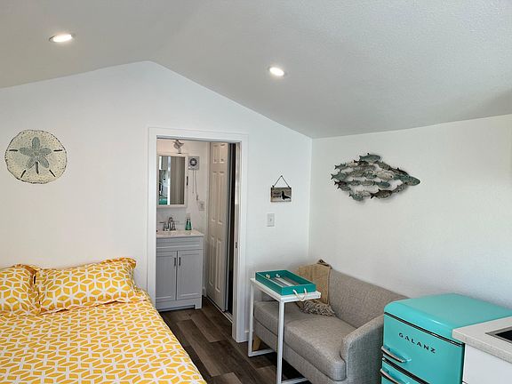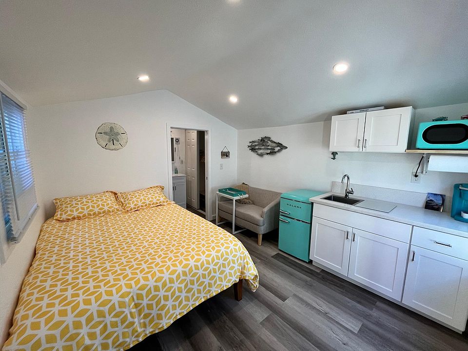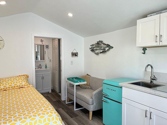 Newly remodeled furnished mini studio with attached bathroom and kitchenette...everything you need! Lovingly restored and decorated by local owners. Located in the quiet, safe beach community of Seal Beach, CA. Steps from Main Street (walkable to over 20 restaurants, shops, grocery store, and pharmacy) and two blocks from the beach. Private gated entrance and courtyard. Fully furnished (everything is new!) with all utilities, wi-fi, and street parking pass included. Amenities: queen bed with new memory foam mattress, 24" smart TV, small fridge/freezer, two burner hot plate, microwave, space heater/fan, linens, kitchenware. One person occupancy - no exceptions. No pets. Must have proof of credit history. Not visible from street. Call for viewing. Utilities, internet, and street parking pass included. One person occupancy. No pets. No smoking.