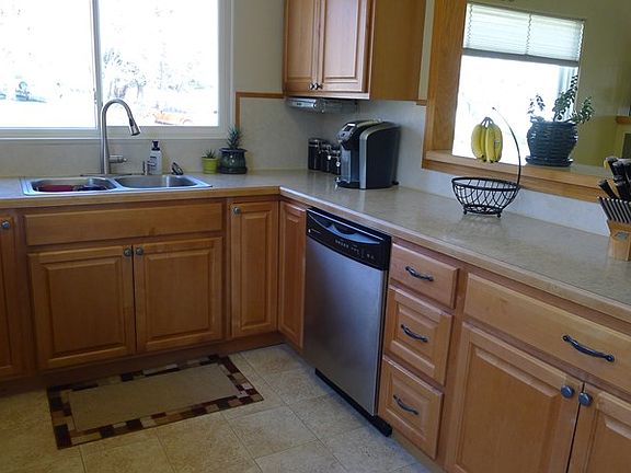 Nicely updated home on a double corner lot with an oversized 2 car garage! Home features hardwood floors, updated windows, wiring, updated kitchen, bathrooms, paint, radiant hot water heat, gas fireplace in the main floor living room and huge potential in the basement. Outside has a very private large back yard, covered patio, underground sprinkler system, and plenty of room for pets and kids.
