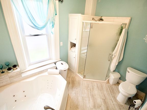 What a Gorgeous home! Everything has been done here. Very tasteful updates. Huge kitchen with island for all you home cooked meals. Wonderfull Jacuzzi tub. Nice large glass block window in upstairs shower. All the rooms have great sizes. The laundry room is right off of the kitchen. There are 4 bedrooms here and a ton of space on the main floor. Newly built 2 stall garage. There is a shed and a great fenced in yard area. This home is a must see!