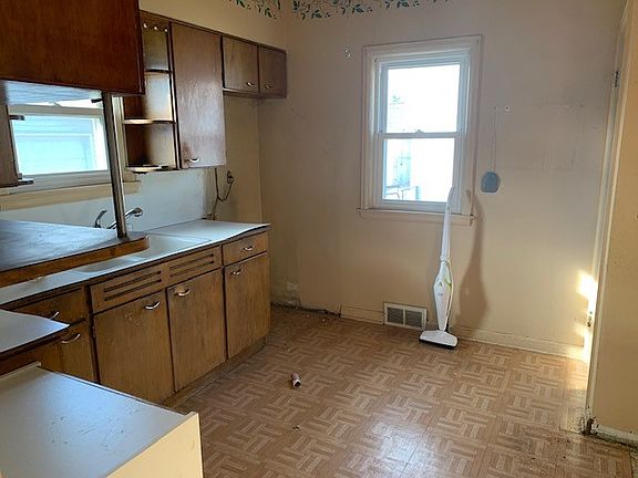 This story and a half home has great bones and is ready for a new owner. Vinyl siding, a newer roof per the assessor, and 2 car garage are just some of the great features. Walk into the living room with a large picture window, plaster walls, and arch doorways. There are 2