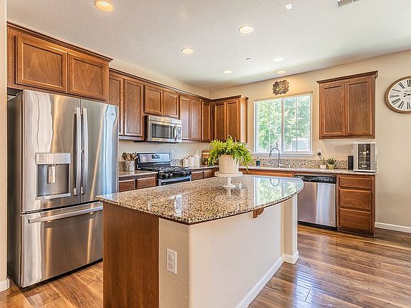 Charming two-story home in Brentwood for sale. This home is zoned for highly rated schools, walking distance to downtown Brentwood, and near multiple shopping plazas. Gourmet kitchen with free range oven, dishwasher, breakfast bar, island with bar seating, and an eat-in area. Spacious family room with ceiling fan, a tiled gas-burning fireplace with wooden mantel, and large windows allowing tons of natural light in. Up the grand staircase there is a loft area - perfect for an office space, game room, work out area, etc. Large and tasteful master bedroom with ceiling fan paired well with master bathroom with a large sunken tub, standing shower, double sink vanity, and huge walk-in closet. Each bedroom has a ceiling fan and gorgeous wooden sliding closet doors. Backyard with shade, high trees, and turf area. Owned Solar and Water Softener in garage - Solar powered by Sun Run produced 6500 kWh MORE than used. Custom mounted garage shelves, cabinets, and work bench.