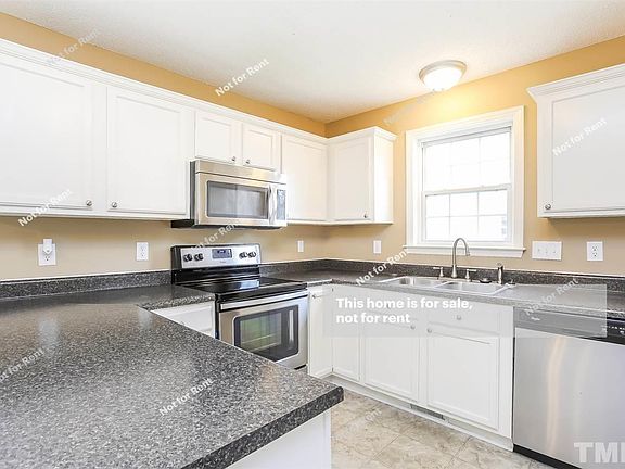 This Knightdale two-story home offers a gas fireplace, stainless steel appliances, master walk-in closet, master bathroom dual sinks, and an open deck. Fireplace and chimney to convey as-is, no known defects. Windows with possible blown seals to convey as-is. This home is vacant and cleaned regularly.