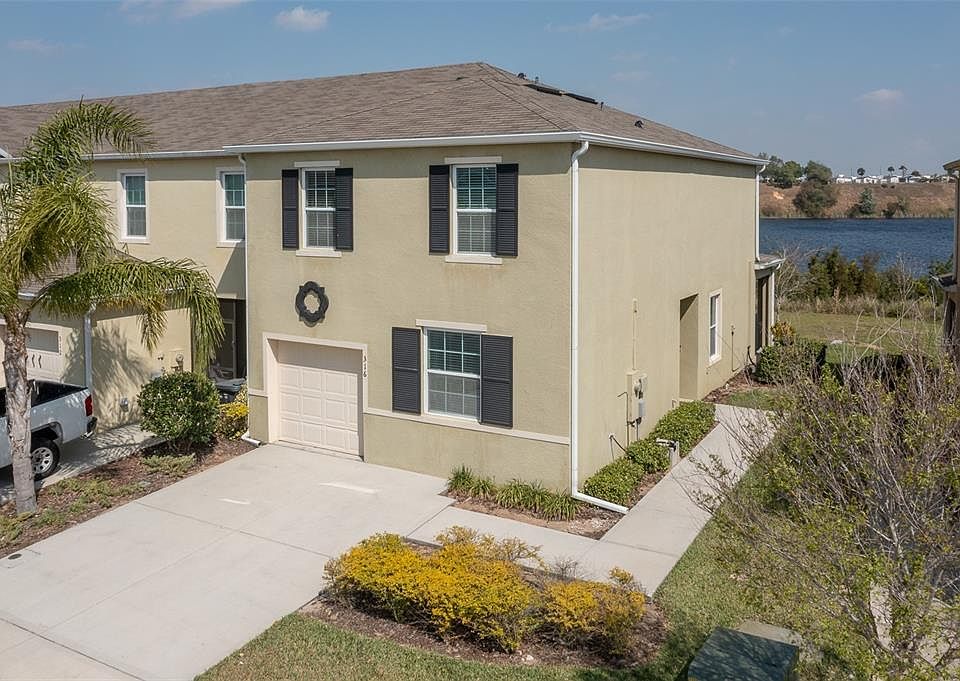 **Water View**Lake Bluff at Davenport!! A Town Home community located on the corner of Ronald Reagan Parkway and Old Lake Wilson Road. Close to Reunion Resort & Golf Club and Champion Gate. Beautiful Town Home community is centrally located in the city of Davenport, just minutes from Shopping, Restaurants and 8 miles Disney entrance. Lake Bluff is a gated community that offers a resort style community pool. With Block construction upstairs, downstairs and in between the homes, which help keep your home Cool, keep energy costs Low and makes noisy neighbors not a problem. No assigned parking here, all our homes have a One car Garage with a 2 car Driveway. You will enter to an open floor plan with a breakfast nook in the Kitchen and a spacious living room/ dining room combo. A 3 Panel Sliding Glass door welcomes you to the 8'x22' covered lanai that has a Magnificent View of the Pond. Upstairs you have your Master Bedroom with French doors that opens up to plenty of closet space and a Master Bath with dual sinks. This home also comes with a Laundry Room which includes a Washer and Dryer (they are different from the photo) and loads of room for your hampers. Our Town Homes come with all appliances including window treatments(Blinds)(Verticals) and are move in ready. *Please note that no representations or warranties are made regarding school districts or school assignments; you should conduct your own investigation regarding current and future schools and school boundaries. "Furniture is negotiable whatever you need." Offering up to 1% of the loan amount, in lender credit towards closing costs or interest buy-down, when the client uses the preferred lender.
