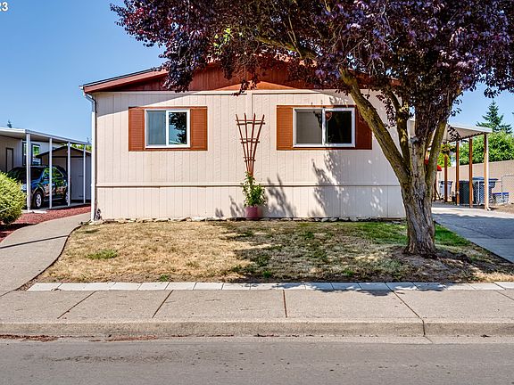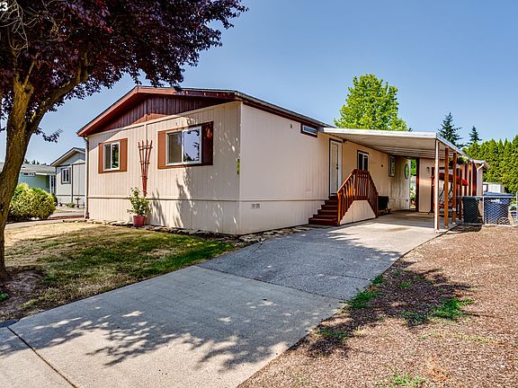 Back on the market, with a failed sale at no fault of the seller. Come enjoy this conveniently located spacious manufactured home in Hidden Meadows Park. This all ages park also features stick built homes. The vaulted ceilings and the additional den off the main living areas creates a spacious feel inside. Fresh paint throughout as well as recently painted exterior and dual patios adds a pleasant touch to this home. Enjoy the central heating and air conditioning and updated double paned windows. The carport offers ample parking with extra space and a storage shed along with an additional tool shed in the large fenced backyard. The primary bedroom offers excellent natural light, a bathroom with tile flooring, a large soaking tub, separate shower and walk in closet. Come see it today!