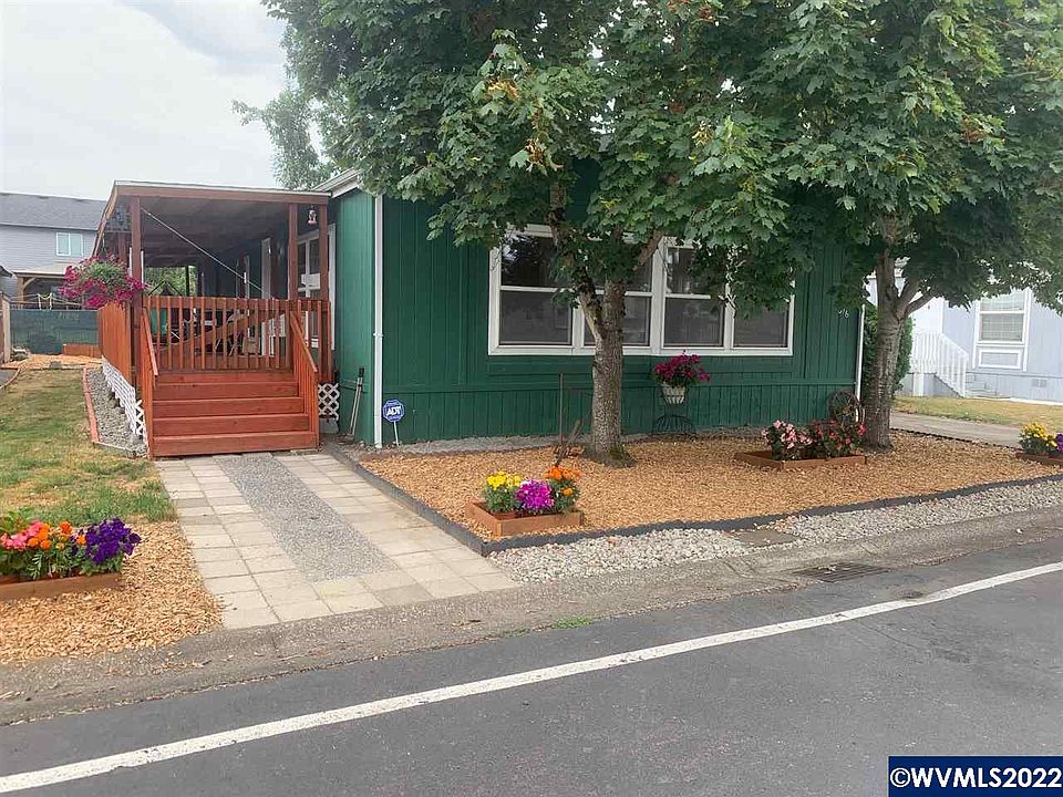 Motivated Seller! All ages park, with lots of updates! New flooring, new paint. New roof & skylights in 2017. New 8x48 deck in 2020, covered to enjoy in all seasons! New vent hood, and many fixtures. 2 car tandem carport for off street parking. Partially fenced yard area with raised beds. 2 sheds for extra storage. Main suite is in back of home, with garden tub and dual sinks. Kitchen appliances and washer/dryer included. Park rent includes water, sewer, and city safety fee.