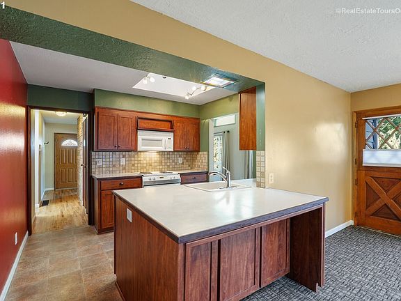 Bring your hammer and make this incredible home your new home! Spacious lot, gorgeous deck overlooking territorial views, parking galore! Mid-century style with hardwoods throughout main floor, vaulted ceilings, stone fireplace. Updated kitchen w/ pantry; appliances included. Lower separate living area with 2nd kitchen, 2 bedrooms, wash/dryer hook-up and living room. Beautiful yard, water feature. Great freeway access. Needs work, may require special financing or cash. Sold as-is; estate sale.
