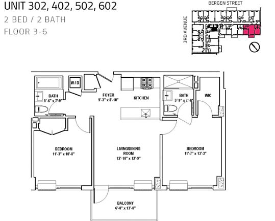 *Stunning 2BR2BA, 302 Features* - In unit w/d - Big windows with lots of light - Comfortable layout, easy to furnish - Full-size, stainless-steel Frigidaire appliances, including a burner-top gas range, microwave, built-in dishwasher, and refrigerator from Summit. - White cabinetry, stainless-steel finishes, and sleek, white countertops. - The bathrooms impress with modern light and dark tiling and polished chrome finishes. - In addition, hardwood flooring, with custom made one-way shades, complete the residence - PRIVATE BALCONY *Lifestyle Amenities* *Prioritize Convenience* The Bergen offers a 24/7 staffed front desk concierge, with maintenance and management available 7 days a week. Offering various amenities, including a landscaped courtyard and outdoor space, resident lounge, stunning rooftop, and fully equipped gym, with free Wi-Fi access in all common areas. In addition to accessibility to our 24/7 package room and bike storage. *IGNITE Club & Community* Take advantage of our inviting amenity spaces and our strong sense of community by joining Dermots exclusive IGNITE club. Our in-house managed amenity & social club provides events regularly, such as Brunches, Movie/Game Nights, as well as classes taught by well-heeled professionals, including Wellness & Health, Mixology, and Board and Bubbles charcuterie classes. Additionally, IGNITE club grants residents access to special deals and discounts through an array of partnerships we have with local businesses. *IGNITE Fit* Our fitness center features treadmills, ellipticals, bikes, machines, and free weights up to 45 lbs, and an outdoor workout space, adding to the quality of your workouts. Circuit classes in our on-site gym and fitness partnerships with centers like Tangerine Yoga add unique value to IGNITE Fit. *IGNITE Lounge* Our beautiful Resident Lounge will welcome you with modern furnishings and design. Quite striking, it impresses with generous seating space, TV, pool table, and a view of our outdoor space. Bring your friends to unwind and watch TV or work from home and enjoy our free internet/wifi. *IGNITE Terrace* A sanctuary from the city, our terrace is a breath of fresh air. Fully landscaped with tons of greenery, our courtyard sits behind our lobby, with wooden steps leading up to a second level, hosting a lounge area. *IGNITE Roof* Our roof is host to gorgeous panoramic views of Brooklyn and Manhattan, with ample seating space, perfect for lounging or to bring up some guests. Our rooftop BBQ is available first come, first serve. Wifi is an added bonus, making it a perfect spot to work from home. *Our Neighborhood* Where Downtown Brooklyn and Boerum Hill meet, the Bergen offers an experience that caters to the best of both worlds! The hustle and bustle of Downtown Brooklyn have made it a growing hotspot and host to utmost convenience, being a transportation hub and home to landmark buildings, restaurants, and cafes. Boerum Hill is just around the corner, with incredible tree-lined streets, nightlife, and shops. *Photos are of another unit and are representative of 302