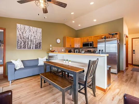 Walk to town! This fully furnished 3 bedroom, 2.5 bathroom townhome is located in a quiet community and is just a 5 minute walk to town where you'll find countless boutique shops, restaurants, and breweries.