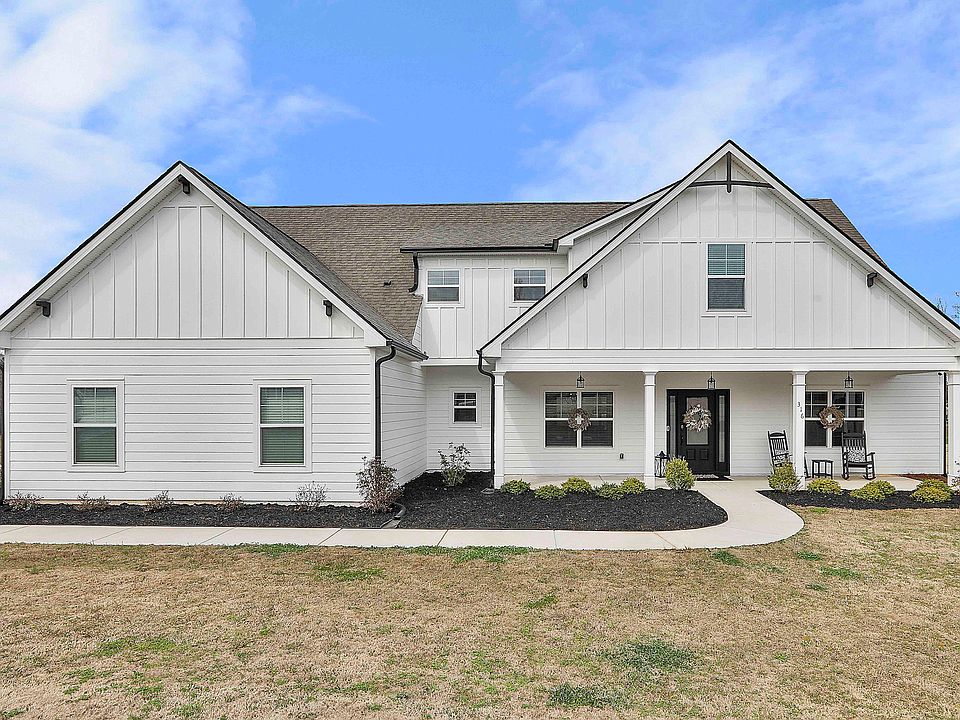 ***UNBELIEVABLE NEW PRICE*** Sellers are READY TO SELL! Looking for BETTER THAN NEW and MOVE-IN READY? Look no further than this BEAUTIFUL farmhouse style resale in Senoia's Bluff Mill Farms! The popular JLC BENSON XL (with platinum package) plan with three bedrooms (including the Primary Suite) on the main level AND a large bedroom suite upstairs, this home is sure to meet all your needs. You'll love being welcomed by the rocking chair front porch. As you enter into the foyer you'll note the beautiful LVP plank flooring, the coffered ceiling in the Dining Room, and the Vaulted Family Room with fireplace. The gorgeous kitchen overlooks the main living areas of the home and offers an oversized island with upgraded stone, perfect for entertaining, stainless steel appliances including wall oven, dishwasher, microwave and smooth cooktop with subway tile backsplash and a roomy breakfast area for casual dining. The split bedroom plan boasts two bedrooms with a shared hall bath on one side and the Primary Bedroom suite on the other side with it's tray ceiling and spacious spa-like bath which is perfect for relaxing after a long day. The bath offers a dual sink vanity, soaking tub, separate tiled shower, and oversized closet. As you come in from the garage you'll enter the mudroom area that is flanked by the laundry room. The staircase is tucked in behind the kitchen. Upstairs, you'll find another large suite with sitting room/office, full bathroom, and bedroom with large closet-ideal for guests or separate home office. Outside, unwind on the covered back porch with fireplace overlooking the large level yard. ***Owners poured extra concrete for a future garage***This home is a true 10! Don't blow the budget with a new build!! Take advantage of this opportunity to own this LIKE NEW beauty!