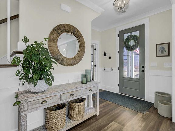 In Nexton, life happens on the porch! Welcome home to 316 Bright Leaf Loop where you're welcomed by a full-length Charleston-style porch overlooking a spacious and inviting park that is meticulously cared for by the HOA. No detail has been spared in this extended Laurel from Pulte, enhanced with extensive custom upgrades and an open concept floor plan. Whether you're enjoying dinner with friends in a formal dining room or sipping some homemade sweet tea in the rear sunroom and viewing the garden-like backyard, the numerous design additions are absolutely charming. This 5-bedroom, 3.5 bathroom beauty is a true neighborhood gem, right out of a southern home magazine! The main level of this home features a highly desirable open concept floor plan with a luxury gourmet kitchen as a focal point in the center of the home. High-end culinary KitchenAid appliances, unique brick tile backsplash, glass front cabinets, custom quartz island and countertops, a custom beverage center with a wine and beverage fridge, and a double oven make this kitchen an aspiring chef's dream! A gorgeous custom stone fireplace in the great room is perfect for chilly fall or cozy winter nights. Rounding out the main floor is a large formal dining room, a half bathroom, a fifth bedroom that can be made into an office, a convenient laundry room, and spacious master suite. Plantation shutters adorn many windows providing the perfect finishing touch that only adds to the southern charm. On the second floor, you'll find two large bedrooms that share a Jack and Jill bathroom, as well as a flex bonus room space. There you will also find a third large bedroom that has an attached full bathroom, perfect for your guests. The landscaping around the home features a complete yard irrigation system that will keep the mix of trees and plants looking beautiful with little effort. It's a private outdoor paradise. A breezeway connects the home with a two car, detached garage and an extended three car driveway. The backyard also has a patio with a custom antique brick fireplace with matching brick steps and walkways. It is a perfectly private outdoor entertaining area! Whether you're on the front porch sharing stories or in the backyard spending time with family or friends, you'll make new memories enjoying all this community has to offer.
