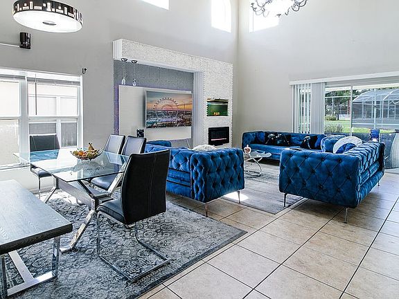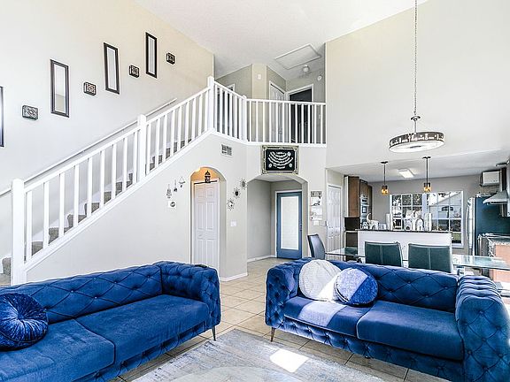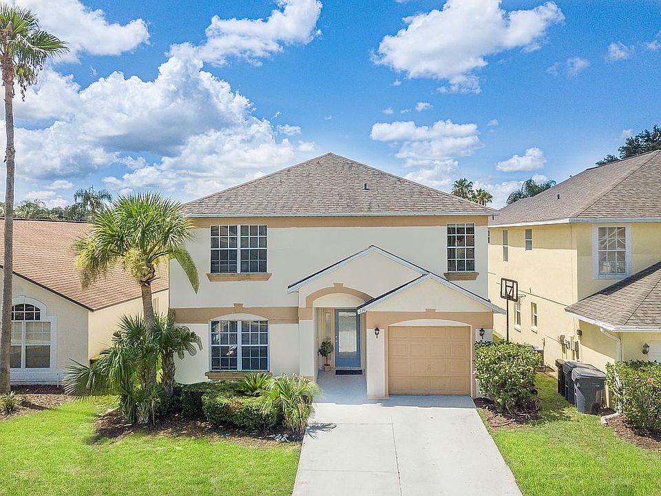 Amazing 2 Story PRIVATE POOL Home located in the desirable gated community of Villas at Westridge. This updated 4 bedroom 3.5 bathroom has an open space layout with a custom entertainment center and beautiful tile floors. The high ceilings open for plenty of natural light to surround your living area. Roof was replaced in 2016. The kitchen has sleek granite countertops, large cabinets, Range hood, breakfast bar and a cozy breakfast nook. Located outside is a well maintained screened pool area with plenty of patio space. The second floor includes a large master bedroom, walk-in closet, walk in shower and additional bed/baths. Short term rentals allowed! HOA includes Gate, Exterior Maintenance, Community pool, Cabana, Playground, Tennis and Volleyball Courts. Westridge is ideally located within minutes to Champions Gate, I-4, Posner Park, Disney Shops and Restaurants. Contact us today for a private showing
