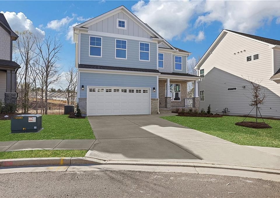 FLASH SALE! $30,000 PRICE DROP – Home must CLOSE by September 30! Move-in ready, this Drexel floor plan with a FINISHED BASEMENT by Eastwood Homes is tucked away in a private cul-de-sac with a spacious yard and tree-lined backdrop for added privacy. The finished basement offers a full bedroom, bathroom, and living area, creating an ideal retreat for guests, a game room, or additional entertaining space. The main level includes a private office, formal dining room, and a gourmet kitchen with sleek grey cabinets, quartz countertops, and a stainless steel hood vent. The living area opens to a covered back deck, perfect for outdoor dining and relaxation. Upstairs, the luxury primary suite features a spa-inspired shower and upgraded finishes, while the secondary bedrooms are impressively large with plenty of natural light. At Twin Lakes, residents enjoy resort-style amenities including lakes, a pool, clubhouse, fitness center, dog park, and more—all just minutes from shopping, dining, and I-85.