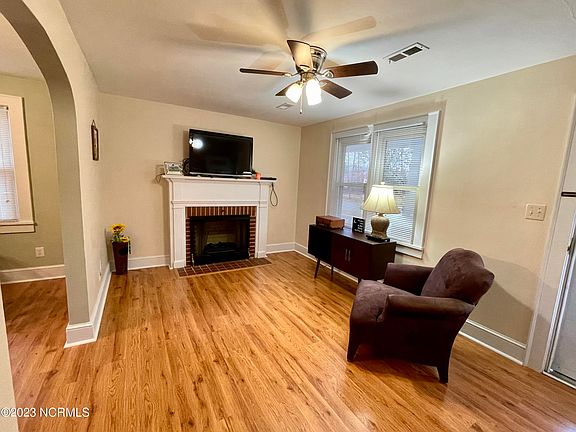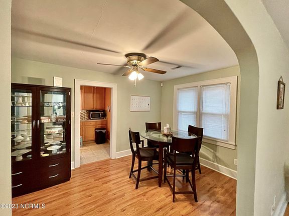 Charming move-in-ready bungalow in Elizabeth City, conveniently located just a few minutes from shopping and dining.  Home features an inviting wrap-around porch, arched wall in dining and family room, galley kitchen, 2 bedrooms and an updated bathroom, laundry area with stackable washer and dryer with direct access to the side yard. Windows, roof and HVAC approximately 10 years old.  Kitchen, plumbing, insulation and 220 amp panel box have also been updated.  New shower enclosure 2022. Huge floored attic and large barn-style shed for lots of storage.