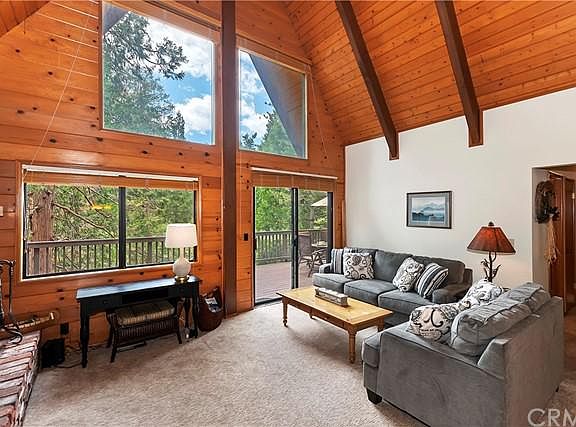 Immaculately maintained turn key home ready for you to start making those memories! High Beamed ceilings with lots of natural light and open concept living space. First time on the market Ever! Pride of ownership is clearly seen throughout! Very Clean and spacious decks for entertaining that have recently been upgraded to Trex decking. You'll love the peace and quiet of this special property, and forested views with a seasonal creek in your backyard! Less than a mile to the Village and with Lake rights! Located on a plowed and Maintained road, fresh paint on the exterior and new flooring throughout. Private upstairs master suite with views of the treetops, The Covered carport has direct entry to the house and is only two steps down. Huge den downstairs with a bedroom, bath, tons of storage and inside laundry. This home has two fireplaces so there is room for everyone! It's ready to go with everything you need, just bring your suitcase and come start living your Lake Arrowhead Dream!