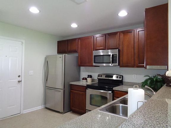 This lovely home welcomes you into the spacious family room with smooth ceilings throughout.~ The open eat-in kitchen features 36'' cherry stained maple cabinets, recessed lighting, and stainless steel ''GE'' appliances including smooth top range, built-in microwave, dishwasher, & food disposal. You'll also find plenty of counter space, perfect for entertaining. Upstairs you will find NEW CARPET in all bedrooms and on the stairway. Relax in your spacious master suite that includes a sitting nook, large walk-in closet, and master bath with dual vanities, Garden tub/shower and a linen closet. Sip you morning coffee on the balcony just off the master .The spacious guest bedrooms also feature large walk-in closets and share a jack and jill bathroom with dual vanities.