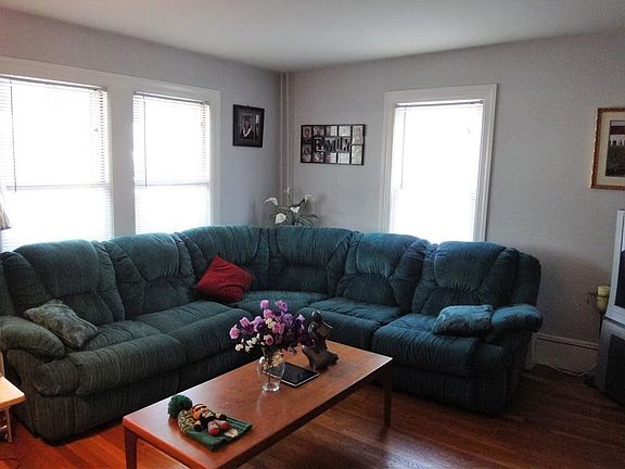 Charming and modern two-level unit INCLUDES HEAT AND HOT WATER. Located on the 2nd and 3rd floors of a 2 family, this spacious apartment has it all. Large eat-in kitchen includes dishwasher, microwave, and gas cooking. There is a good-sized living room and a three-season sun porch overlooking a nice shared yard. Three large bedrooms are located on the second level. This home is set back from the street and there's a private entrance to the unit from the parking area. Free laundry in the building. Convenient to Mass Pike and express buses. Cats OK. Sorry, no dogs.