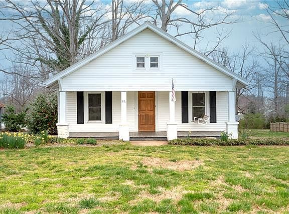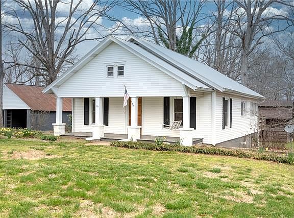 Here's your chance to get into that cute cottage style home you've always wanted. Charming Cottage/bungalow with a 1.33 acres, covered front porch, private back yard. 2 car detached carport. 3BR/1 bath, main level features living room and a den with cozy fireplace, huge master bedroom with barn style closet door, kitchen with bar stainless dishwasher, range & refrigerator, tile dining area, updated bath and laundry room with washer/dryer. Finished attic features 2 additional bedrooms that are heated and cooled. You must pass through the 2nd bedroom upstairs to get to the 3rd bedroom. Back deck overlooks deep backyard and barn.