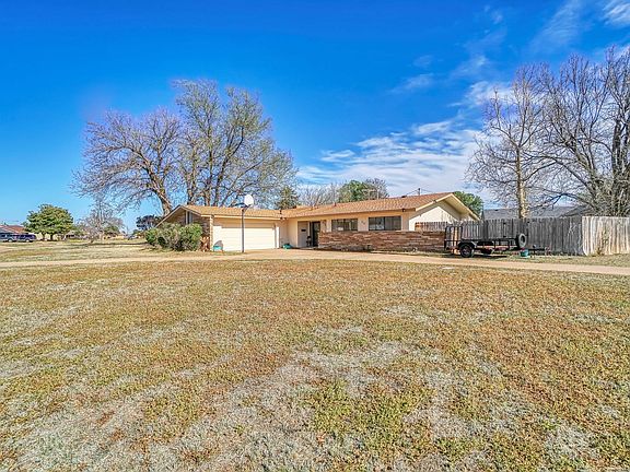 Welcome to this 3 bedroom home situated on a spacious corner lot with an inviting inground pool. As you approach the home, you are greeted by a huge yard with a circle driveway. step inside and you immediately appreciate all the natural light flowing in from the large windows. The living room features a cozy fireplace, making it a perfect place to relax with family and friends. The kitchen also has plenty of light flowing through from the large windows. Step outside and you'll discover your own private paradise. The inground pool is perfect for hot summer days, while the patio is ideal for outdoor dining and entertaining. The backyard is fully fenced for privacy. This home also features a two-car garage, new roof and new paint inside & out. Located less than 10 minutes to the Altus Air Force Base.
