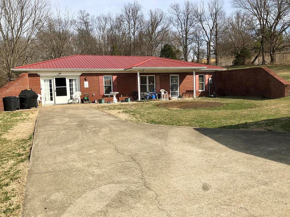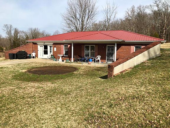 Check out this Unique underground home! 2 bedroom/2 bath with 1 bonus rooms. This home features over 1320 sq. ft.(PVA) of living space and is a real ''cost saver'' on utilities. Kitchen appliances are to stay with the home (stove, refrigerator, dishwasher). House sits on 1.954 +/- acres with a 2 car carport and an extra building with a concrete floor for all of your lawn equipment needs.