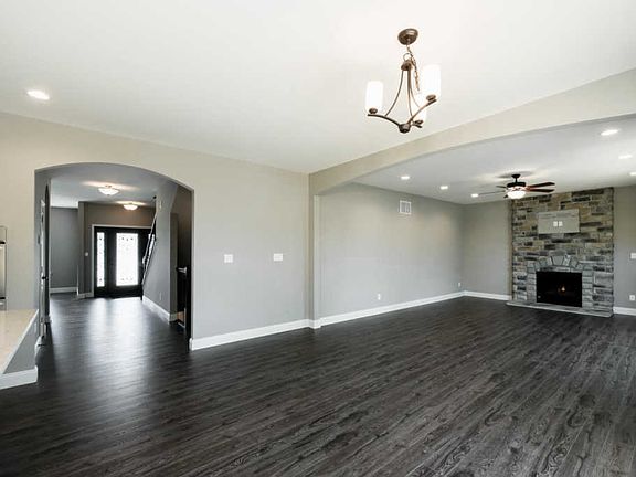 Fabulous 3.75% Financing Program! See Supplements for Details! This newly built Lombardo home features a spectacular kitchen, with quartz counters, stone arched wall chef's area, gas cooktop, double wall oven, stainless steel appliances & center island. Serve your guests in the open dining room with arched doorway details. Hardwood floors & 9' ceilings throughout the main level. Relax in the great room with a gorgeous stone gas fireplace. Huge walk-in closet & landing room off the family entry & a main floor powder room. Upstairs, the private master suite has a spa-like bath with separate soaking tub & seated shower, dual sinks & an incredible walk-in closet. Second floor laundry near the 3 family bedrooms, 2 with their own walk-in closets. The loft provides great additional living space. Walk-out lower level with 9' pour & a 14x14 deck for outdoor entertainment. Zoned HVAC & irrigated yard. Ft Zumwalt (West) Schools. Easy access to I-64/364. Lombardo Quality! See this beauty today!