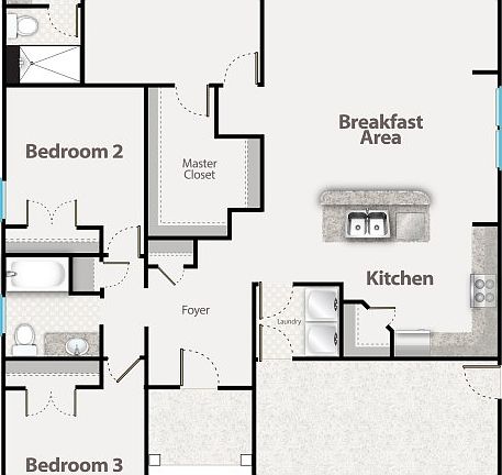 This open floor plan boasts a spacious kitchen with granite counter tops, soft-close cabinet doors with tall crown molding, dishwasher, range & microwave, a walk-in pantry & peninsula island. The guest bedrooms are separate from the master and the master boasts an over-sized walk-in closet, double vanities with granite counter tops. Wide plank hardwood floors are included in the foyer, there is a finished two car garage, full sod & sprinkler system, tank-less water heater, 1 Year 2 Year & 10 Year Warranty's, Termite Bond & ALL closing costs are paid! This Home is a must see! These are stock photos and may show some upgrades. Please contact the Community Manager for a list of upgrades to the home and for more details. 100% USDA financing available and closing costs paid with the use of preferred lender and closing attorney.