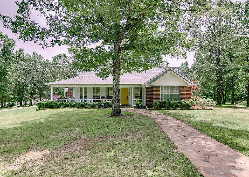 TAKE ANOTHER LOOK! PRICE CUT! This well maintained custom built home sits on 2.56 acres conveniently located close to Texarkana and is in Genoa School District. Lovely traditional home with wrap around front porch, large covered deck on the back and a 486 square foot oversized garage. Lots of natural light. Gravel circle drive with flagstone walkway leading to freshly painted front door. Split bedroom arrangement. Master bedroom has French doors opening to back covered deck. Master bathroom features a claw foot tub and separate tiled shower. Ceramic tile floors throughout the home except for two carpeted bedrooms. Built in window seat, desk and bookshelves in two bedrooms. Kenmore Elite appliances in kitchen. Solar shades cover the front windows. Property also has a two story building (approximately 800 sq feet) that could be used as a guest house, living space for college student, home office, home school space, play/game room or potential rental income. Two story building also includes a laundry room with washer/dryer, a working well and two full bathrooms and two kitchenettes.