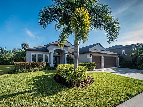 BECAUSE YOU DESERVE IT! What an awesome opportunity for you to purchase this 7 year new "K. Hovnanian" quality constructed home, in growing Apollo Beach - Harbour Isles community - The Reserves of Harbour Isles!! Car stopping curb appeal features upgraded Florida friendly landscaping & bedding, with an inviting front elevation and 3-bay garage providing plenty of parking space! One of the great draws & appeal to Harbour Isles is their 90 - 100 foot wide lots!! This large, over ¼ acre lot will not disappoint! Tired of being able to reach out and touch your neighbor(s)?!! THIS IS THE PLACE FOR YOU!! The spacious backyard faces south towards peaceful, serene, wooded conservation area! NO BACK YARD NEIGHBORS! P-L-E-N-T-Y of room here to add an extended lanai/pool/spa/summer kitchen! It would be PERFECT for parties, grilling or chilling!! You'd never have to leave your backyard oasis! The interior here, with its great roomy, functional floor plan, will not disappoint! Much sought after spaces in everyone's home searching are here, including a formal dining room, convenient eat-in kitchen café, a private den/study/office with double French doors, and a large upstairs bonus room with walk-in storage/closet space! This bonus room, with (surround sound included!!) is ideal for pool or game tables, or would make an awesome theatre room! Beautiful oversized ceramic tile, along with gorgeous plank ceramic tiling, adorn the interior in all the right places, with carpet only in the master bedroom, one of the secondary bedrooms, and the upstairs bonus room! Very convenient for any slight pet dander or allergy sufferers! Additional upgraded finishes within include oversized moldings, arches & art niches, crown moldings, tray ceilings, upgraded panel cabinetry, and granite counters in kitchen and all the baths! Speaking of kitchens...This chef's dream kitchen features a HUGE breakfast bar, GE stainless appliances, a roomy walk-in pantry, and tons of cabinet & countertop space making your meal prep & cooking a breeze! The Owner's Suite has plenty of room for your king-sized furniture, with a spacious walk-in closet! The ensuite spa-like master bath has dual sinks, a walk-in shower & a relaxing garden tub! Not To Mention - Harbour Isles community comes with great resort like amenities! Clubhouse, a gym, pool, playground, volleyball court, lighted basketball court, fishing piers & walking trails! BONUS -- NO FLOOD INSURANCE REQUIRED HERE!! CHECK OUT THE PICTURES & TOUR AND MAKE YOUR VIEWING APPOINTMENT TODAY!