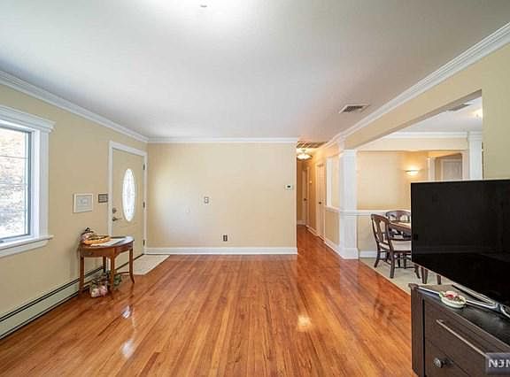 Welcome to this beautifully updated and well maintained ranch with open floor plan.First floor features modern kitchen to dining area and access to large in-ground heated pool and paved stone patio.Finished basement offers a magnificent summer kitchen open to the family room and workshop. Some of the amenities include hardwood floors,well crafted wood moldings, gas heat/baseboard/3 zones,central air, updated electric, radiant heat in main bathroom, privacy fence and much more. This wonderful home is located on a quiet street near schools, transportation and shops.Blue ribbon schools.