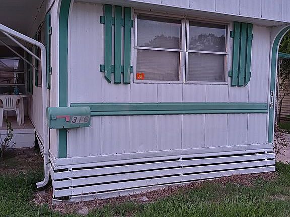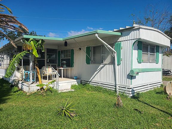 Monthly Lot Rent is $431.07. There is a required land deposit fee of $1,500 by the park, however, that deposit will be returned if the buyer chooses to sell the home later on. The Seller is negotiable on the land fee. Base Water is included in the Lot Rent Bill. Come see this move in ready, adorable, 2 bed, 2 bath, single wide. The affordable lot rent is a great plus! The living room and kitchen to this home are open to each other for easy living and entertaining. Great eat in kitchen that features a gas stove. New vinyl plank flooring throughout. The master suite has a newer bidet toilet! The guest bath is large and features a tub with shower. An attached porch room has its own window a/c unit and is currently used as part of the owners living space when they have guests. The washer and dryer are in a very large shed, which has tons of storage space for all your bicycles and beach toys. No need to bring beach sand into your home, there is a great outdoor shower on the back of this home. Spacious carport! Open porch to enjoy the great Florida lifestyle with your morning coffee! This home is just 7 minutes from the beach! This home will be gone in a blink of the eye. Please call today to view this home! ALL INFORMATION DEEMED ACCURATE BUT NOT GUARANTEED Additional fees for amenities may apply. Agent and or Company is not responsible for quoting current monthly fees, lot rent, or dues/fees associated with the community or home. Those figures are the responsibility of the buyer and community manager/owner to obtain/ disclose.