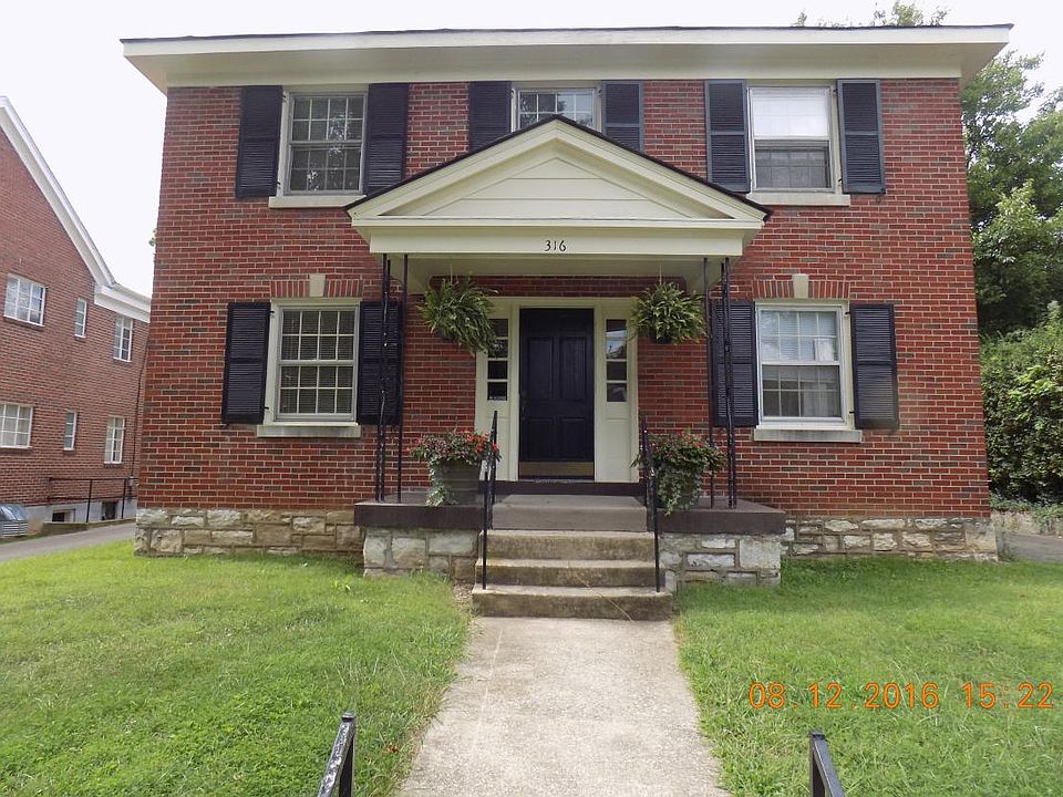 One of the best neighborhoods in Lexington. 2nd floor apt in brick 4 plex. One block walk to restaurants, drug stores, dry cleaners churches and schools. Walk to UK. Recently renovated. Well maintained, refinished hardwood floors, ceiling fans, mini blinds. Large bonus room that is often used as 3rd bedroom. Approximately 1000 sq. ft. Stove, refrig, dishwasher. New high efficiency central heat and air. Free laundry center for your use in the large dry basement. Loads of closets, extra storage. Parking space in covered garage. Available Aug 1. Great space in a great place. Tenant pays gas, electric, water