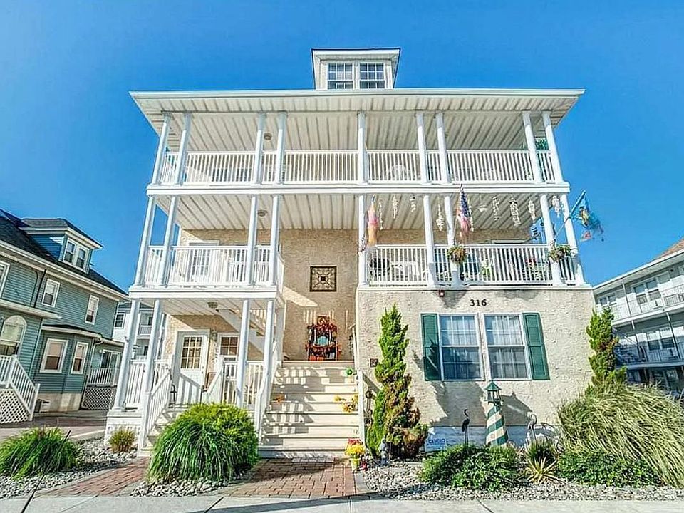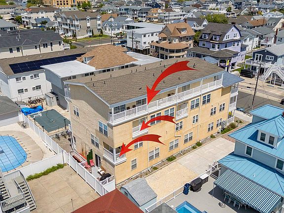 This newly renovated furnished 5Br 3Ba townhouse is just 2 blocks from the beach, and has tons of space for lots of guests or even two families to share! After a day at the beach, you’ll enjoy one of the many outdoor entertaining spaces. Take your pick from one the 4 outdoor decks or lounge at the after beach garage bar that features a 75” Smart TV, XL grill, Full size fridge, Bar, and sectional seating. It’s a great entertainment area for watching the ball game/movie night, grilling, cold beverages, and relaxing for the whole family. The first floor has an open floor plan with an accent sitting chair area, L-sofa convertible w/ a 60” smart tv, bar seating, white kitchen cabinets, and a large farmhouse table with custom banquette seating and added storage. Off the first floor is your first of four decks, an intimate coffee deck for 2. Continuing up to the second floor are two bedrooms, a small deck, a full bathroom, and a stacked washer and dryer. 1st bedroom has 2 twin beds with a 40” smart tv, the 2nd bedroom also has a 40” smart tv, and has 2 sets of bunk beds allowing sleeping for 4! 2nd bedroom also has direct access to the bathroom enabling it to be a 2nd master. Continuing to the third floor are the master bedroom with ensuite, two additional guest bedrooms, a hall bathroom, and yet… two more amazing decks. The master features a 32” smart tv, en-suite bathroom, queen sized platform bed with storage, and slider access to the fireworks deck. This deck is perfect for coffee and watching sunrises and Wildwood fireworks, in fact this deck is long enough to accommodate 10! The 4th bedroom has a king size bed, 32” tv, and a slider to that amazing fireworks deck. Last, you have the 5th bedroom which has been utilized as an additional family room, featuring another L-sofa that converts into a queen size bed. There’s another 60” smart tv, accent chair, and beverage fridge. This room flows out to your 3rd deck, the sunset deck! Awesome deck to view beautiful sunsets over the bay and enjoy the night air with sectional seating. Walking distance to Seaport Pier, Morey’s Pier, Owen’s Pub, Hassles Ice Cream and all the boardwalk has to offer! One car garage and free off-street parking is available. HOA includes three outdoor showers. Condo fees are $747.88 per quarter and include master liability insurance, flood insurance, water, sewer and common area maintenance. Great rental history, generating $5,400 in peak weeks.