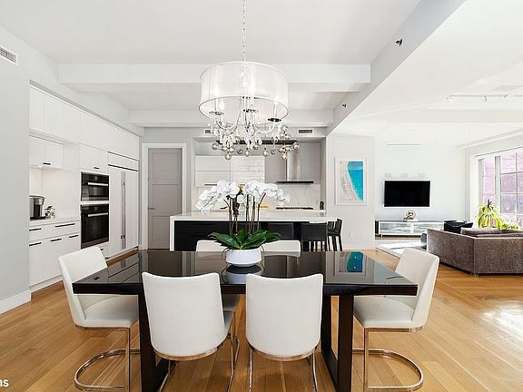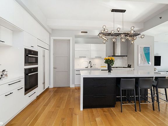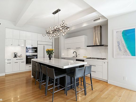 Enjoy the stunning brand new renovated designer kitchen featuring custom white Italian lacquer cabinetry, high end appliances including 48" Sub Zero refrigerator, Miele and Bosch series, LG Calacatta plata counters with a beautiful large island.