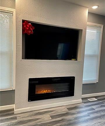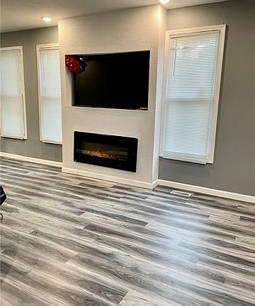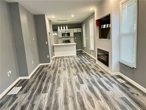 Contemporary living in this remodeled home that features open concept kitchen/living room with quartz counter tops, electric fireplace, 3 bedrooms and 2 full baths, new vinyl siding, back deck off of master bedroom. Cal