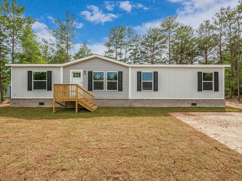 Explore this beautiful brand new manufactured home on 1/4 of an acre with access by county maintained road. Spacious & stylish with an open floor plan and split bedrooms. This home offers 4 Bedrooms, 2 Bathrooms, a flex space, den, coffee bar & more! Check out the kitchen island and whoa at the cabinets! When you first drive up you will notice the upgraded brick skirting for added curb appeal and stability. This home is move in ready & you could be its first occupant.