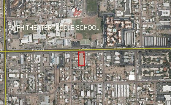 High Visibility C-2 lot across the street from Amphitheater Middle School. Property is secure with fence/wall. Could be an ancillary business location for Amphitheater services, a drive through fast food or other C-2 uses. Property was formerly a mobile home park.