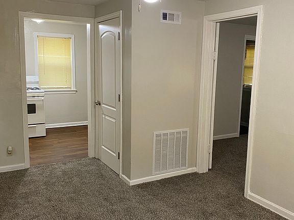 If you want privacy this house is for you. Home comes with one car garage and long driveway for extra parking. Water, sewer and trash included in rent. Refrigerator, stove and stackable washer/dryer also included. There is a shed at the back of the house. House is freshly painted and new carpet. Bathroom features a claw tub with shower curtains. Close to Noland Rd for easy access to shopping. No pets. $50 application fee per adult.