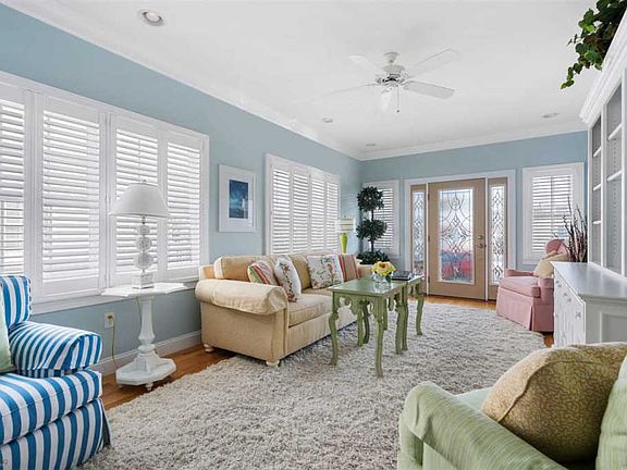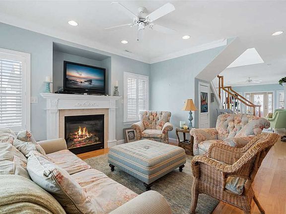 This incredible 4-bedroom, 3.5 bath Townhome is just 2 blocks to the beach! Better than new, this unit has the feel of a single-family home. A charming, covered front porch gives way to a beautiful floor plan showcasing stunning hardwood floors throughout the main living areas and a living room with built-in shelves. Airy and open the family room has a gas fireplace and a storage closet. The dining room adjoins the kitchen where you will find rich wood cabinets, stainless steel appliances, granite countertops, and recessed lighting. A half bath completes this level. Head upstairs to find a spacious master bedroom with a vaulted ceiling, a bright picture window, a door to a private balcony, and a luxury master bath with an oversized, glass walk-in shower with multi-heads, a corner jacuzzi tub, and granite countertops. The second bedroom is the size of some masters and also has a door to another balcony and a private bath with granite and a walk-in shower with glass door. Bedrooms 3 (with a sliding door to the same balcony as bedroom 2) and 4 share the full hall bath with a furniture style vanity and tub/shower. Additional features include plantation shutters and crown molding throughout and comes partially furnished. Step outside onto the covered back deck that leads down to your private, fenced backyard with plenty of room for a grill and an outdoor shower with hot/cold water. An attached 1-car garage and driveway parking complete this amazing townhome. Located in the fabulous Wildwood Crest just 2 blocks to the beach and minutes to superior amenities!