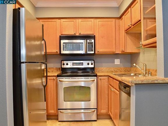 Upper story unit in a gated community! Kitchen upgraded with granite counter tops and stainless steel appliances. Vaulted ceilings and large master bedroom. New carpet and paint. Indoor laundry with washer and dryer included. Complex has community pool, clubhouse, and fitness center. Located close to City Center, Bishop Ranch offices, and the 680 Freeway.