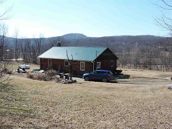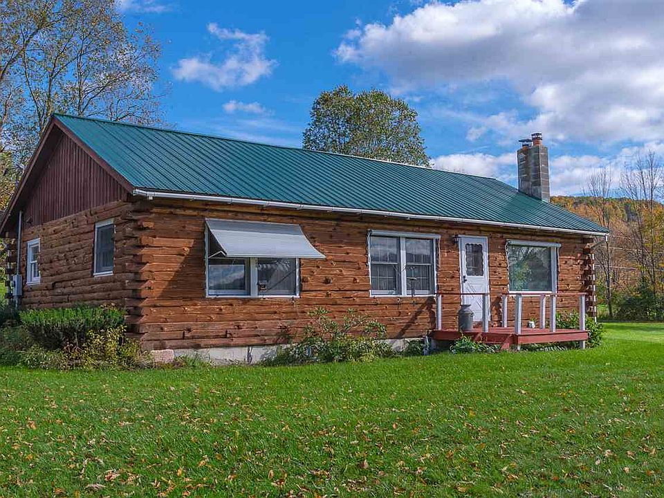 W Pawlet, Vermont. Located on a private Road, off Route 153, sits this 1984 log home on 3.7 acres. A very private location with beautiful mountain views. 2 bedrooms plus an den/office which can be used for more sleeping. A full poured concrete basement. New metal roof installed Dec. 2017. Open kitchen-dining-living room accented with wood stove. Drilled well.