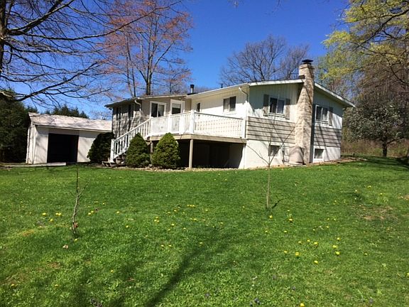 Welcome home to this move in ready 3 bedroom ranch home in a country setting on 1.98 acres. Many updates include central air, newer furnace, oak galley kitchen and bathroom, vinyl deck and front porch, carpet and more. Large basement that could be easily finished. This home has a one car integral garage and a one car detached garage and also a 1 stall garage as part of the basement with an automatic garage door openers. You'll also find a shed with a loft. Mature trees and lush lawn enhance the exquisite lot.