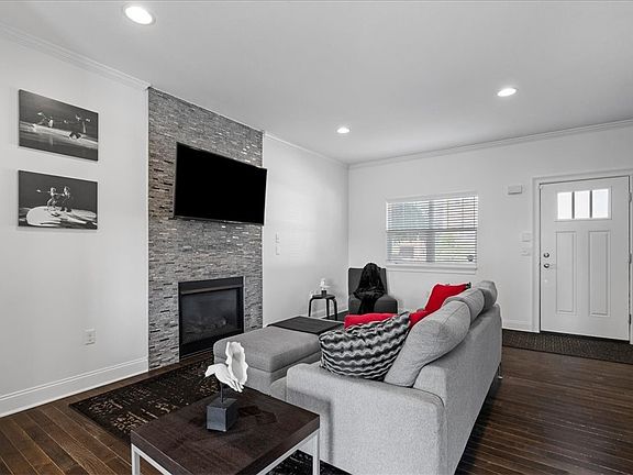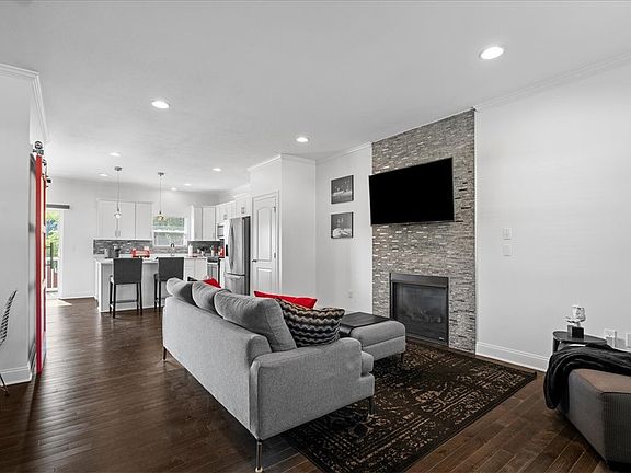 This pristine, move-in-ready home offers an open-concept first floor featuring a spacious living room with a custom stone fireplace and elegant trim throughout. The upgraded eat-in kitchen with custom backsplash opens to a nice-sized dining area with a private balcony, perfect for relaxing. A convenient half bath completes the main level. Upstairs, the second floor boasts a luxurious Primary Suite with an ensuite full bath and a second bedroom, also with an ensuite bath. The third floor hosts a private third bedroom with its own ensuite bath. The finished lower-level offers a bonus room and additional storage. Enjoy the rare oversized two-stall garage with extra storage space. Ideally located near local amenities and public transit, this home offers both convenience and charm.