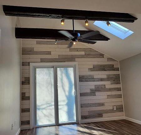 Beautifully completely redone two bedroom unit in a great location. Across the street from a community pool and park. The brand-new kitchen boasts brand new cabinets and granite counter tops.The living room has a vaulted ceiling with exposed beams and the bathroom looks straight out of a showroom. Brand-new central Air Conditioning with a washer and dryer in the unit, a deck off the back and a great yard. Do not miss it. Owner will be asking possible tenants for w-2s, paystubs, to fill out tenant application and fill out an NTN report as well.