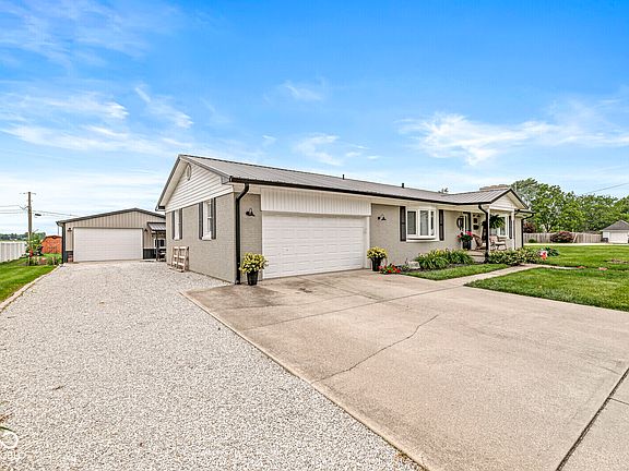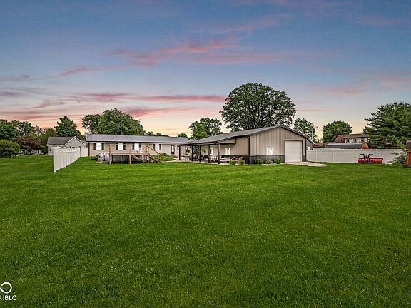 So much goodness to love in this 4 bedroom brick ranch with full basement (partially finished) located in the heart of Tipton on 0.46 acres! Home features LVP flooring in the kitchen and family room, 2 wood burning fireplaces (one in the family room, one in the basement) and 6 year old metal roof. The goodness continues outside where you'll find a 42x32 drive thru pole barn with concrete floors, 200 amp service, heating/cooling, pull down attic, and a lovely covered, wraparound porch with ceiling fans! But wait, there is more! Above ground pool with decking so there is room for all to enjoy! 2 basement staircases, one accessed inside the home and one in the oversized 2 car attached garage. All this on a corner lot with no houses behind the property and a 2 minute drive to the Tipton town square!