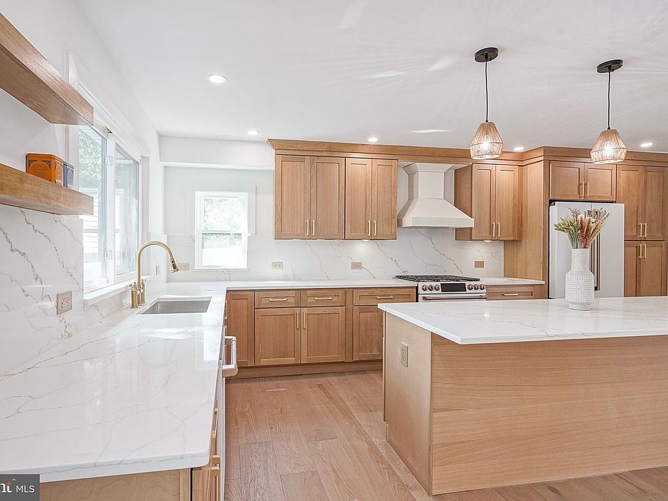 Top-to-bottom renovation in beautiful Moorestown! No expense spared re-imagining this nearly 3,000 square foot home on a beautifully manicured lot. Newly laid brick walkway leads to your new solid wood farmhouse door, enter into a vaulted entryway up a couple oak steps to an expansive wide-open floor plan with wide plank white oak hardwood flooring - straight ahead you'll discover the jewel of this home an incredible designer kitchen, white oak cabinets, quartz counters and full quartz backsplash, matte white Cafe appliances, counter depth fridge, wood range hood, expansive 8 foot+ island with comfortable seating for 4, lots of storage including floating shelves, pull out trash bins, and full height/depth pantry cabinet. First floor is drenched in natural light front to back from the large bay windows in the front to sliding glass doors in the back. Great room features built-in cabinets, feature wall, fireplace, and 13 foot high vaulted ceilings. A few steps to the second floor you'll find 2 generously sized bedrooms and the primary suite with 2 full-size closets, primary bath features marble flooring, double vanity, and designer tile shower. 3rd floor features an oversized bedroom with zoned HVAC control that can serve many purposes based on your needs (guest/in-law suite, kids room/playroom, or office with a full private bathroom right outside the entry. There is also storage access attic on this level. Lower level features a great room, coat closet, generously sized mud/laundry room with built-in cabinetry and direct garage access, and a newly renovated powder room and mechanical closet. Home also features an oversized one car garage with, brand new roof, updated 2 zone HVAC, new water heater, upgraded insulation throughout (in-wall and blown-in attic), new energy efficient windows, doors, updated plumbing, electrical, dimmable LEDs throughout, and brand new 6 foot vinyl privacy fencing completes the look! Enjoy many years of low maintenance living located a short stroll from top-rated neighborhood elementary school, and just 15 minute walk to a fabulous Main Street, don't wait on this one!
