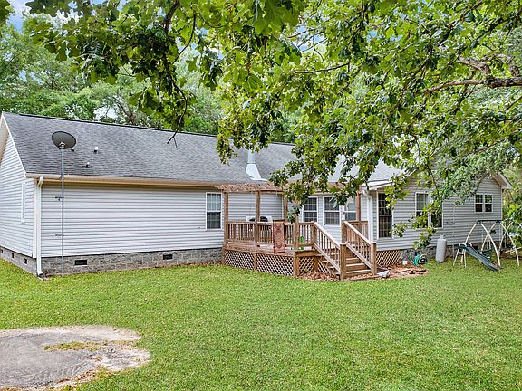 Welcome home! This wonderful, well maintained, 3-bedroom, 2 full bathroom home has 2276 sq ft of living space on .8 acres! The huge, power equipped detached garage is 1800 sq ft of space for all your toys. Located in beautiful Moncks Corner, this home is central to schools, shopping, and several other amenities. Approaching the home, you are greeted with a large front porch, perfect for relaxing or conversing with neighbors. Enter the home through the large family room. The fireplace focal point sets the ambiance while entertaining and adds warmth on those cold nights. Off the family room to the left is the master bedroom with its own private en-suite. To the right of the family room is a separate dining area perfect for those dinner parties or a nice sit-down family meal. Another sitting area is located near the kitchen. The kitchen offers plenty of cabinet space for all your accessories and a great island to grab a bite to eat at. Down the hall are two more generously sized bedrooms which share a full-sized bathroom. The home has new carpet and has been well cared for. This one won't last long so schedule your appointment as soon as possible!