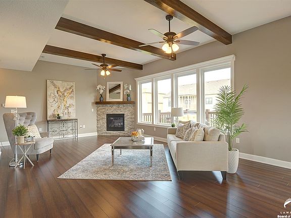 Beautiful NW Lawrence home in Langston Hughes & Freestate High with direct path to the Rock Chalk Sports Pavilion. Upgrades & custom features abound including beamed ceilings, bamboo flooring, granite kitchen counter-tops with stainless steel gas stove & double oven, main level master suite, office, finished daylight basement, media room, a mudroom & spacious deck! This home sits on a 14,385 sf corner lot *Tax information is based on land only and all measurements are approximate.