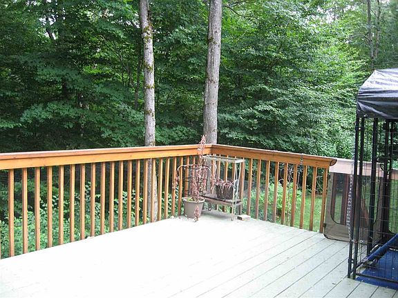 Custom home with extra wide doorways and no carpet - hardwood and vinyl as present owner anticipated need for wheel chair. Very nice kitchen: Granite counters and quality Maytag Stainless appliances - INCLUDED! Also laundry with front loader Maytag washer & dryer also INCLUDED. Kitchen & living room open to one another with central Granite Breakfast bar. Kitchen counters also GRANITE. Cathedral ceiling over the kitchen living room area. Master bedroom with walk in closet and large bathroom with low entry shower! Two other bedrooms with full bath. Full basement with drive under 2 car garage. Sunny deck off the kitchen. Central Air Conditioning. Whole house auto gas generator. A nice home with a lot of extras ~ at an excellent price! Private setting on a double lot. Deeded right of way to Highland Lake at Pirate's Cove. Nice pool and community room there as well. Dock space is available by request from the Association at the beginning of each season. Annual road & association dues are $500 per year.