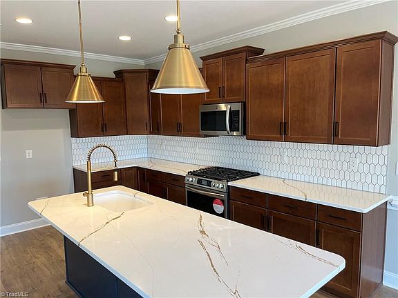 New construction home by the Arden Group! Located in beautiful established Gentry Farm community in the heart of King. Picture shows similar style, will be different color scheme. All brick exterior, open main level layout with 9 ft ceilings & laminate hardwood floors. Bright kitchen with great cabinet space, island, quartz countertops with Blanco composite sink and white picket tile backsplash. Spacious primary suite with tray ceiling on main level is located in back of home overlooking large lot and screened porch. 2nd level includes 3 bedrooms, loft, bonus room, and two full baths. (Msmts & Info taken from bldr plans/specs, subject to change) {LEDFORD II PLAN - elevation C} Beginning stages of construction 4/2023